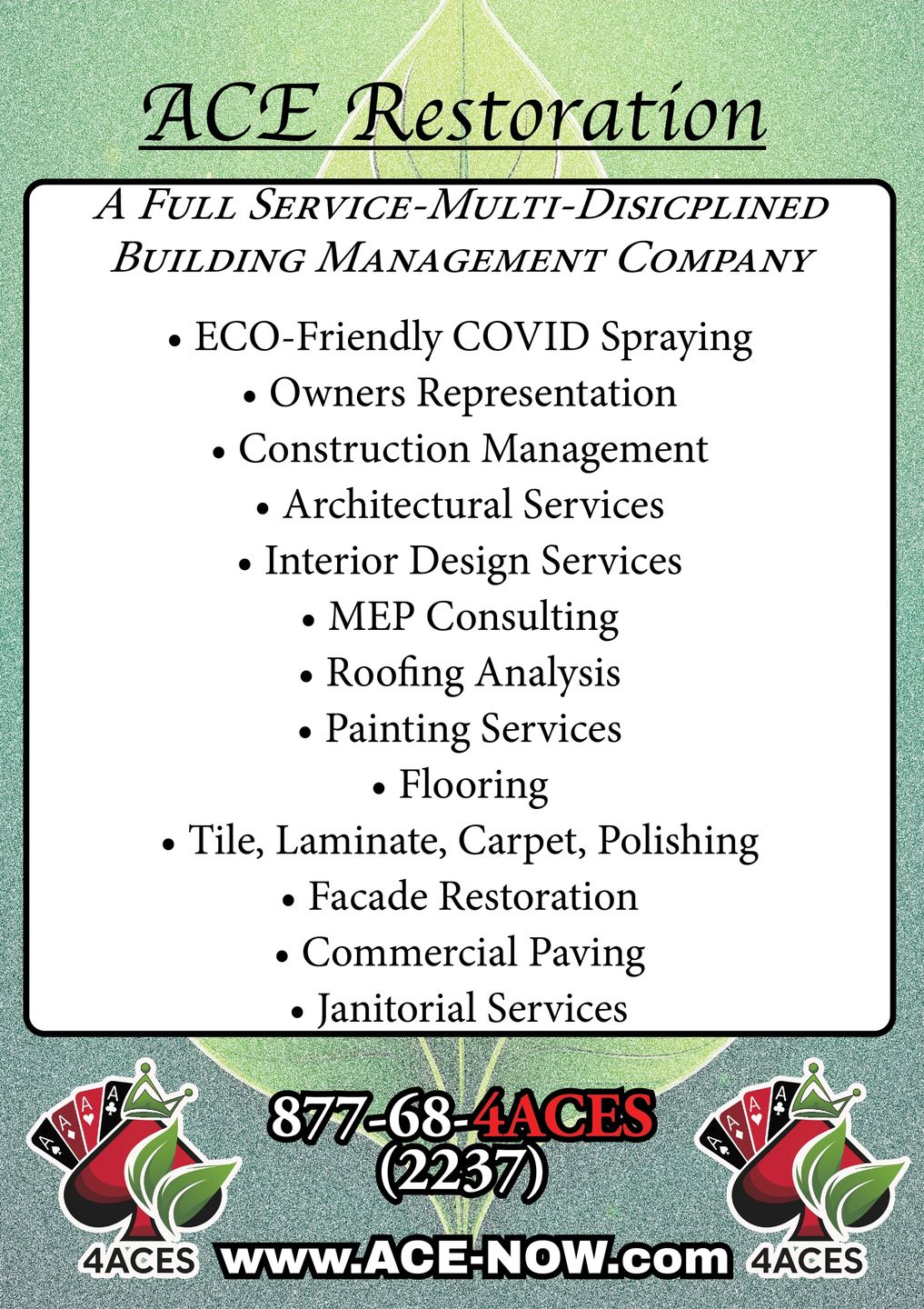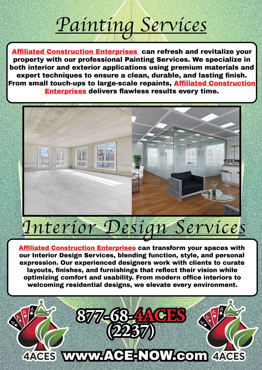 A.C.E. Affiliated Construction Enterprises 877-68-4ACES (877-684-2237)